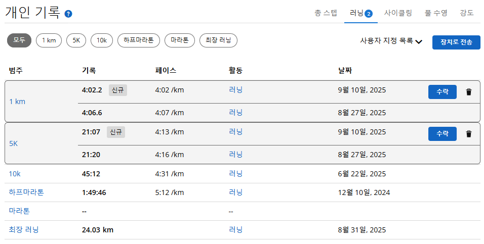 - 오늘 달리기를 마치고 나니 신규 기록이 작성되어 있었다.
