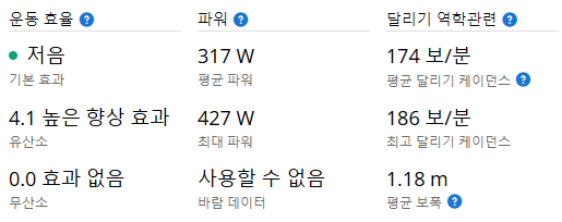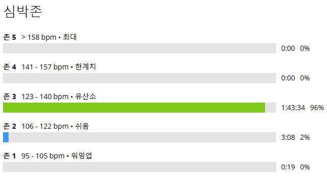 - 평균 심박수가 130bpm이 나오는 등 여유있는 리듬을 유지했다.