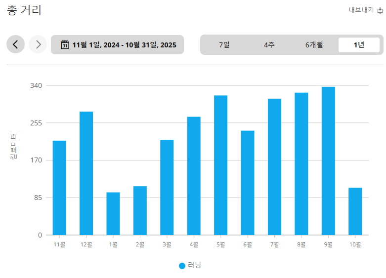- 그래서 이번 달(10월)에는 지금부터라도 여유를 갖고 조깅 위주로 달려볼 생각이다. (10월 26일에 하프 마라톤 대회가 있지만, 당분간 컨디션 관리에 집중하는 것이 맞을 듯하다.)