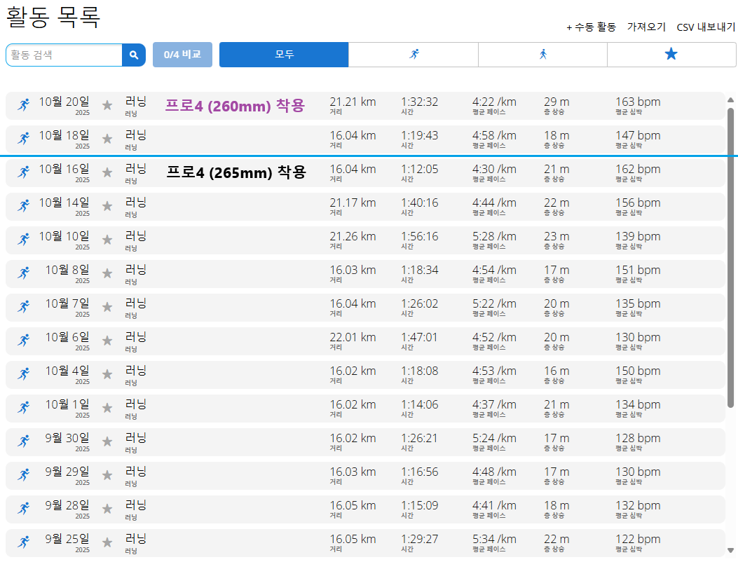 - 지난 10월 16일에 '아디오스 프로4' 검정색(265mm)을 신고 달렸고, 10월 20일 오늘은 흰색(260mm)를 신고 달린 모습이다.