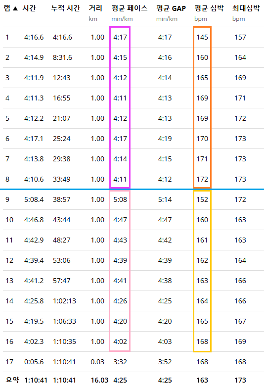 - 다음달부터 컨디션이 회복되면, 마라톤 페이스(약 4:30 페이스) 중심으로 마일리지를 늘릴 계획이다.