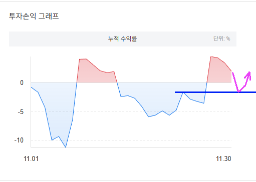 - 11월 누적 수익률은 +1.97%로 마감되었으나, 그래프를 옆으로 연장하면...